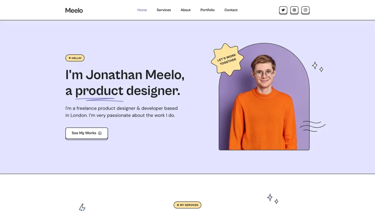 Webflow’s Meelo is a standout personal brand website template for 2026 — bold typography, generous whitespace, and near-developer control without writing code. Monthly hosting fee applies.