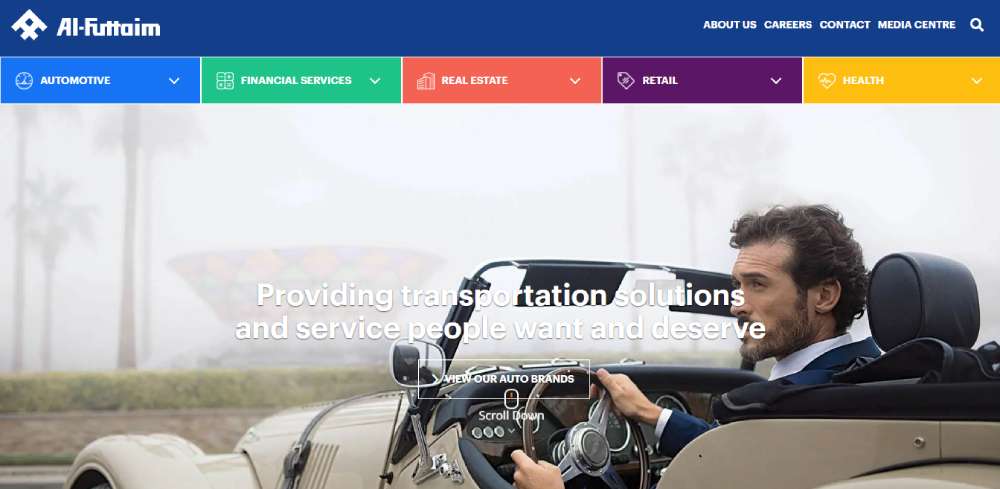 Al-Futtaim's website is a breath of fresh air. It's all clean lines, traditional fonts, simple symbols, and a cool blue accent.
