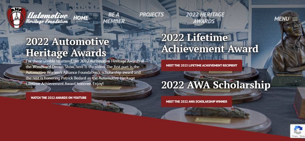With its awards and membership platform, the Automotive Heritage Foundation drives home the importance of preserving our auto history. Its site design is a bridge between the past, present, and future of our motor-driven heritage.
