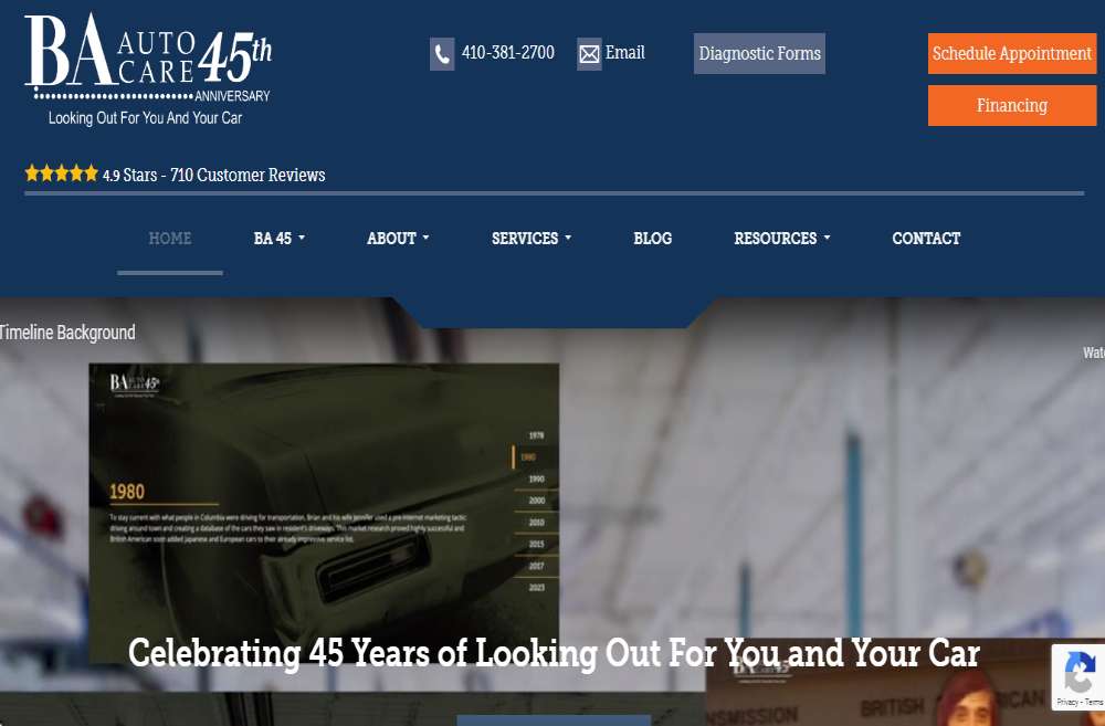 BA Auto Care's virtual hub is a testament to its stellar design. Quality background images lend an appealing aesthetic, while a treasure trove of content, including a blog, showcases their expertise. Does the trust badge on the landing page? That's the green light customers need to know they're dealing with a credible business.