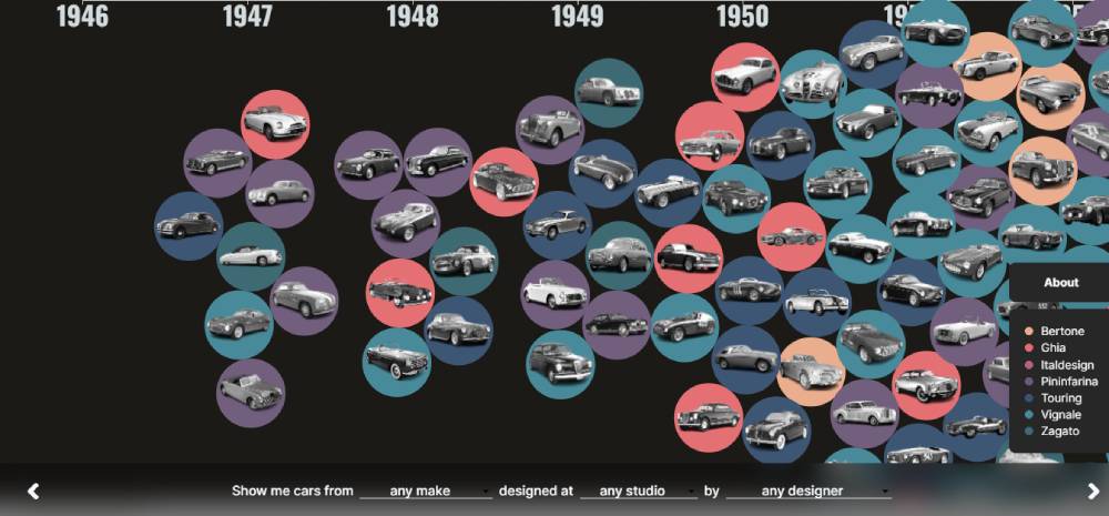 This is like a picture book of car design history, with a focus on Italian studios. From retro beauties to modern beasts, it's all laid out in a neat timeline.