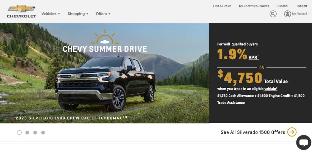 Chevrolet's website backs up their reputation as a top-quality car brand. The fading photographs, coupled with spacious white areas, give their site a clean, polished look.