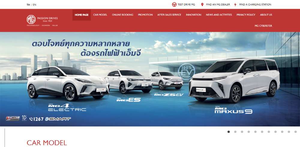 The official MG Cars Thailand website serves as a digital showroom, reflecting the brand's quality and style.