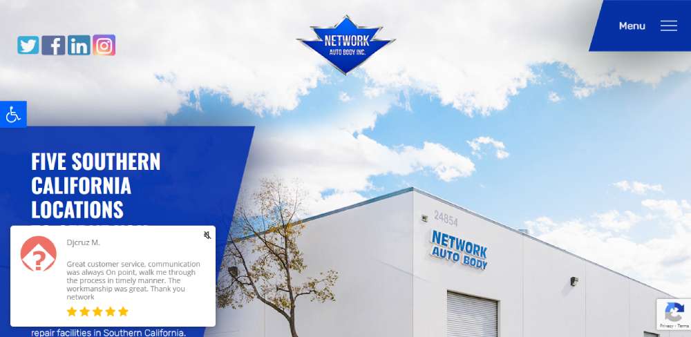 Network Auto Body's website keeps it simple but effective. A comprehensive 'About' section conveys the family-owned business's core values, while a testimonial page and certification details affirm their expertise.