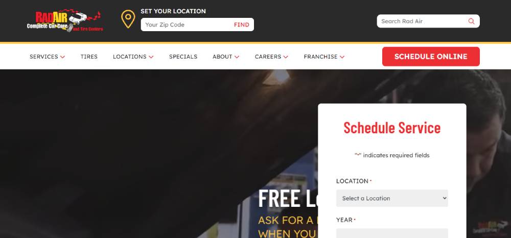 Pull up to Radair's website and you're greeted with bold colors and a lively design. They've got essential info on display, deals that are hard to miss, and a moving background that gives you a peek into their world.
