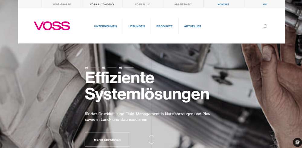 VOSS Automotive sits in the driver's seat when it comes to compressed air and fluid management solutions. Their site is a digital testament to their leadership in the automotive industry.