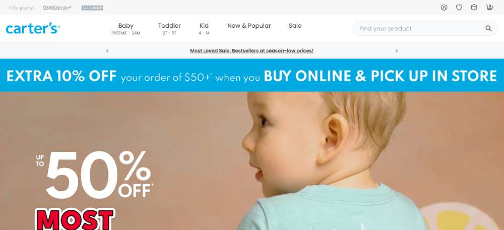Carter's, a name etched in the annals since 1865, stitches together a rich tapestry in baby and children's fashion. Boasting some of the most cherished labels, their website is a stroll through style history, always fresh, always cherished.