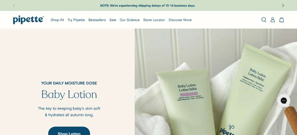 Pipette broke onto the scene with a bang on Labor Day 2019. They've got their grasp tight on the clean family essentials game. Web design that breathes ease and empathy, they know what families are after—simplified nurturing in the purest form.