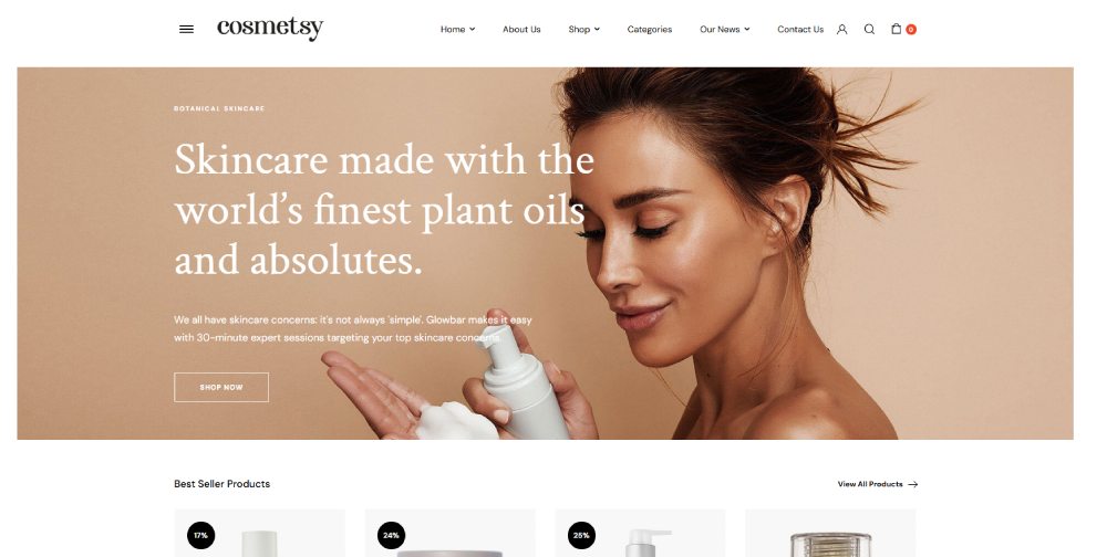 But not every template fits every beauty business. A solo esthetician needs something different than a cosmetics ecommerce store running on Shopify or WooCommerce.