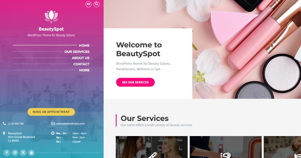 The right beauty website template gives you a professional layout built for salons, spas, skincare brands, and makeup artists, with service menus, gallery sections, and appointment scheduling already in place.