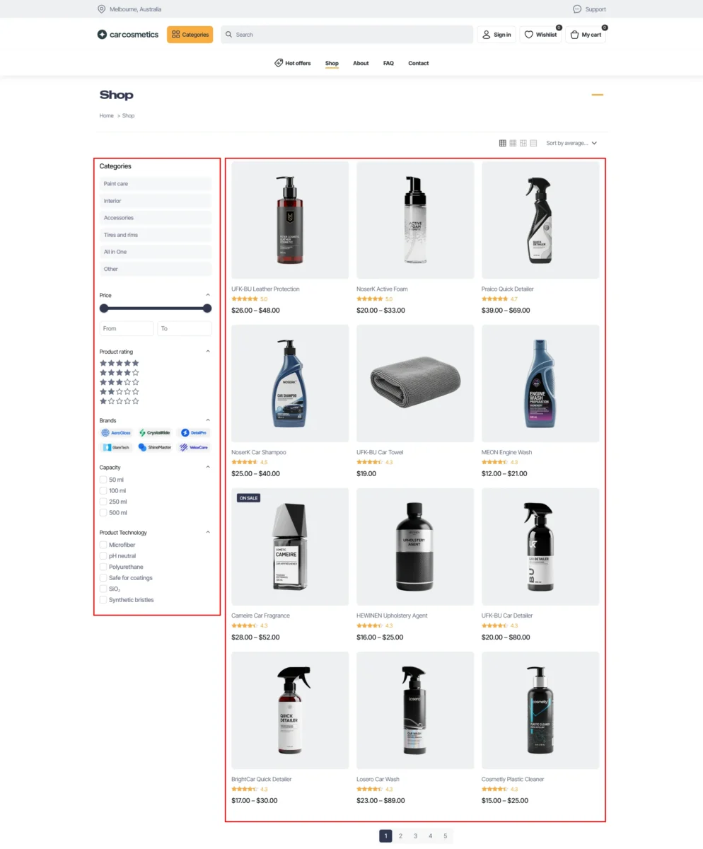 Below, you can see the “Cosmetics 4” pre-built site: first, exactly how it looks fresh after import with the active templates, and second, the view after disabling the header and footer templates to show the default theme layout. You can see how the site looks right out of the box.