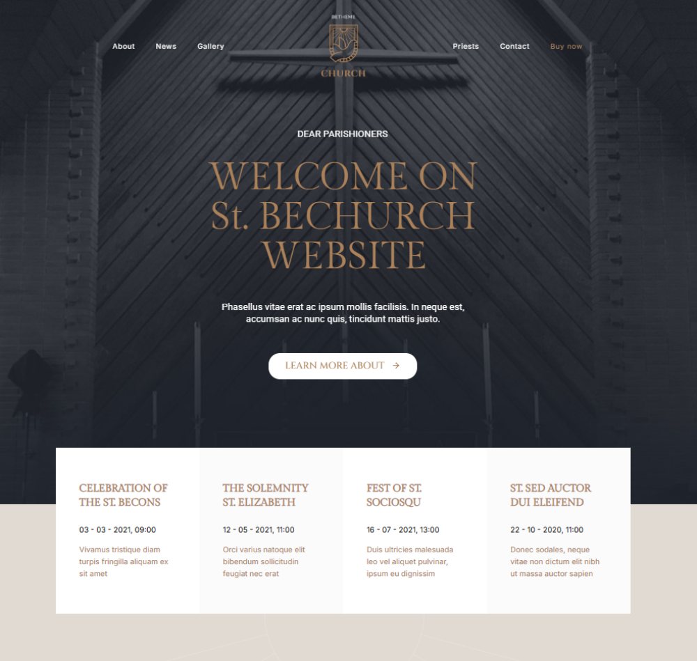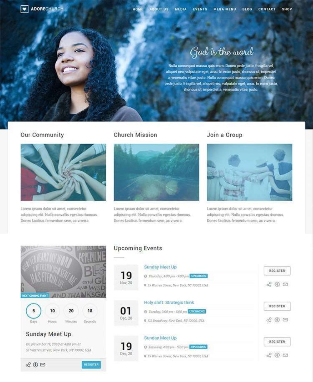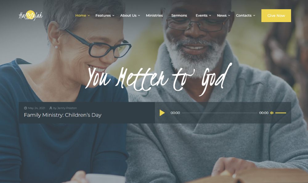 A church website template is a pre-built site layout made for religious organizations. It comes with sections for sermons, event calendars, online giving, and ministry pages already baked into the structure.