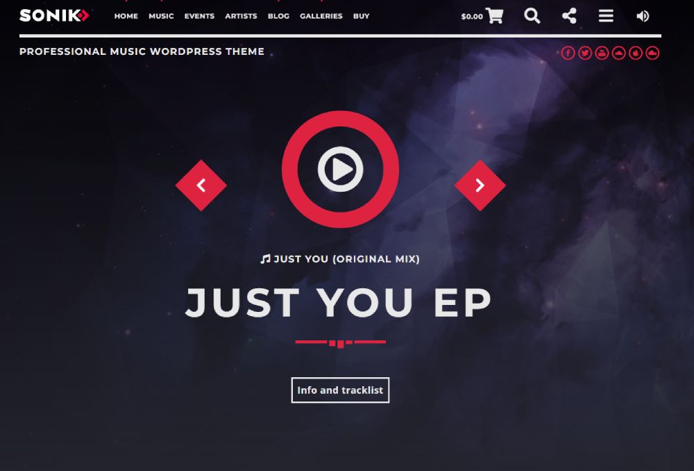 Most come with SoundCloud embed options, Spotify player widgets, and Mixcloud integration for streaming mixes directly on your site.