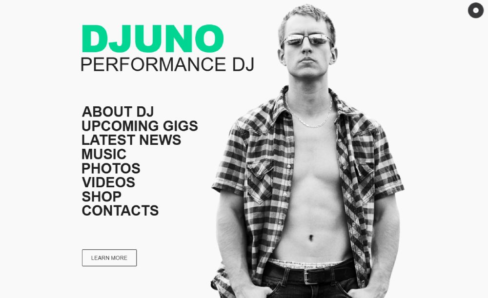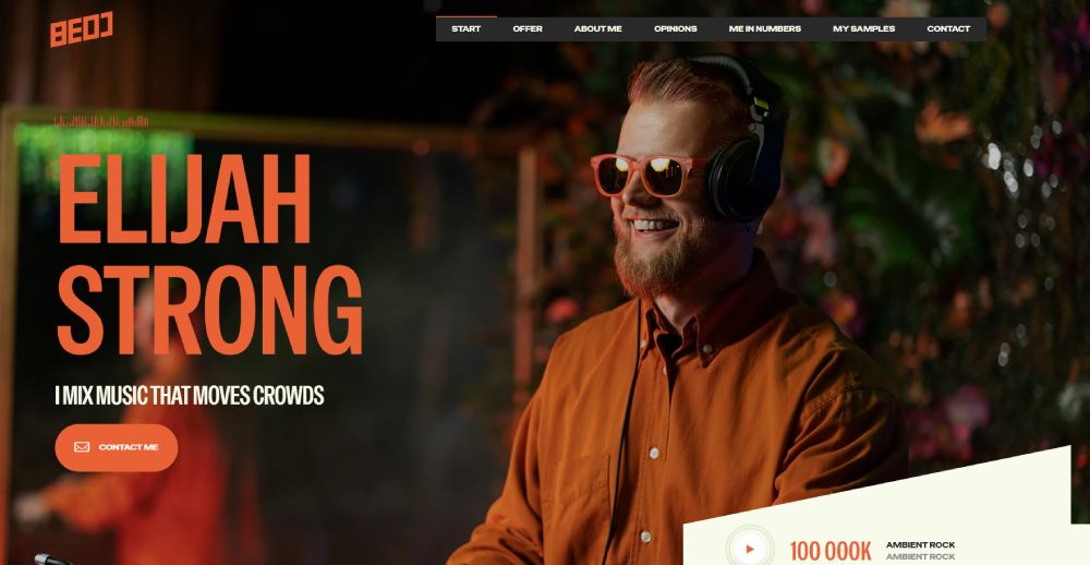One page layouts work great for DJs who want everything visible at a glance: bio, mixes, upcoming gigs, contact form.
