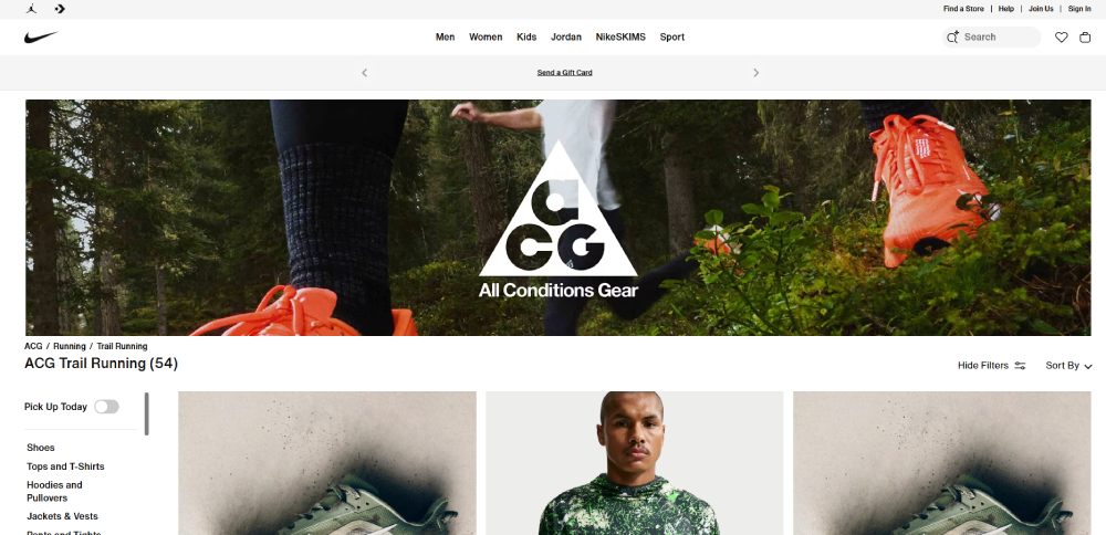 What's worth copying here (even if you're not Nike): the way they structure the page as a narrative with product touchpoints rather than a product grid with marketing copy bolted on.