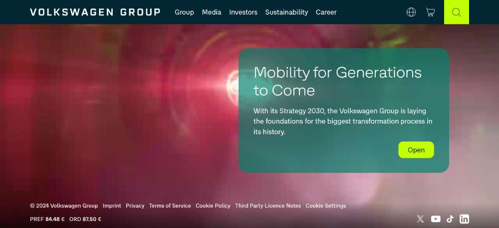 Volkswagen Group envisions “Mobility for Generations to Come.” As part of its Strategy 2030, the company undertakes the largest transformation in its history, focusing on electric mobility, software-driven cars, and sustainability. Their goal is to redefine transportation for a digital, environmentally-friendly future, building cars that are both innovative and sustainable across their extensive brand portfolio.