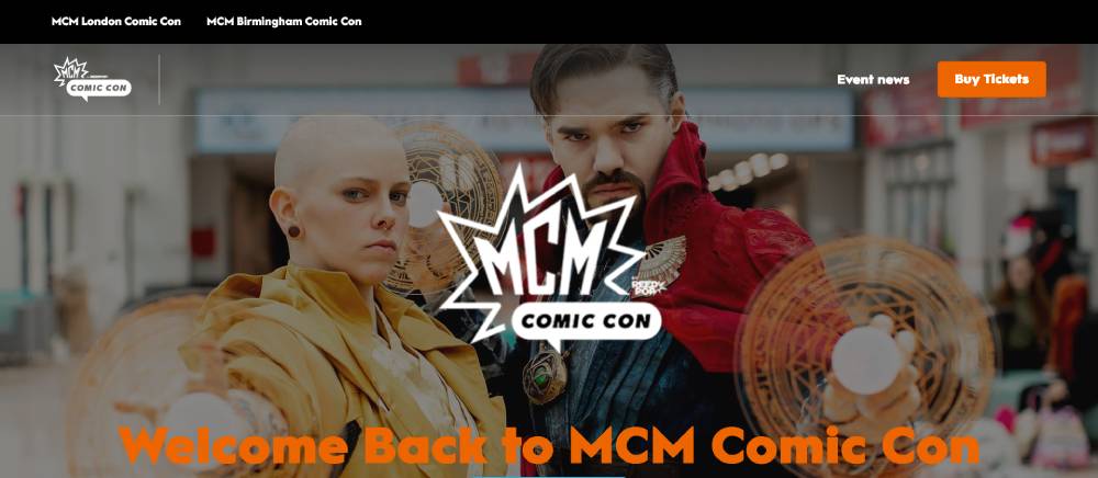 Vibrant color palette reflects pop culture theme. Custom icons and illustrations create unique brand identity. Card-based content arrangement for guests and activities. Fixed navigation with dropdown menus for category exploration. Interactive map interfaces for venue layout help attendees plan their visit.