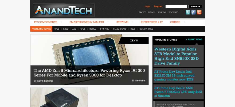 AnandTech is a trusted source for hardware news and tech reviews. Covering PC components, smartphones, tablets, and enterprise technologies, AnandTech provides detailed analysis and benchmarks to help tech enthusiasts stay informed about the latest advancements and products in the tech world.