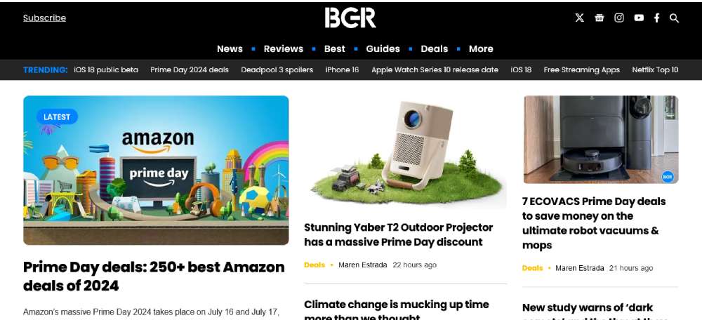 BGR (Boy Genius Report) publishes the latest tech news, product reviews, and deals. The site covers a wide array of topics including mobile, computing, entertainment, and science. It also features guides and the best deals on tech gadgets and services.