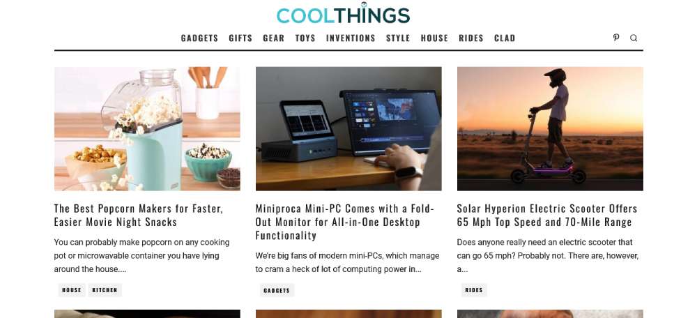 CoolThings curates the latest gadgets, gizmos, gear, and unique items. The site highlights innovative products and provides reviews and information on new tech, toys, tools, and lifestyle items. It focuses on cool and quirky products that stand out in the market.