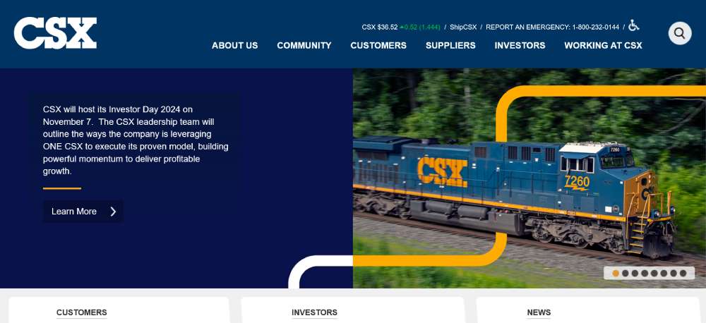 CSX Corporation provides essential rail-based freight transportation across North America, specializing in efficient, scheduled railroading. The company’s five guiding principles—safety, service, cost control, asset use, and people—support its operational model, ensuring reliable service. CSX also actively invests in community programs, environmental initiatives, and technology to optimize operations and support sustainable growth in the logistics industry.