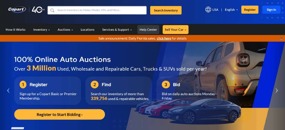 Copart provides online auto auctions for salvage and used vehicles, connecting buyers and sellers of vehicles for reuse or recycling. Their platform offers a broad range of vehicles, from cars and motorcycles to industrial equipment. Copart’s auctions serve individual buyers, businesses, and dealers, making it a go-to destination for those seeking repairable and used cars through a streamlined digital bidding experience.