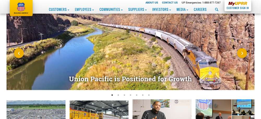 Union Pacific operates a premier railroad network spanning 23 U.S. states. Known for tech-enabled operations, it focuses on strategic growth, cargo security, and community safety. The Kansas City Intermodal Terminal highlights its investment in expanding cargo capabilities. With 160+ years in service, Union Pacific continues to connect businesses, powering economic activity through extensive rail solutions across North America.