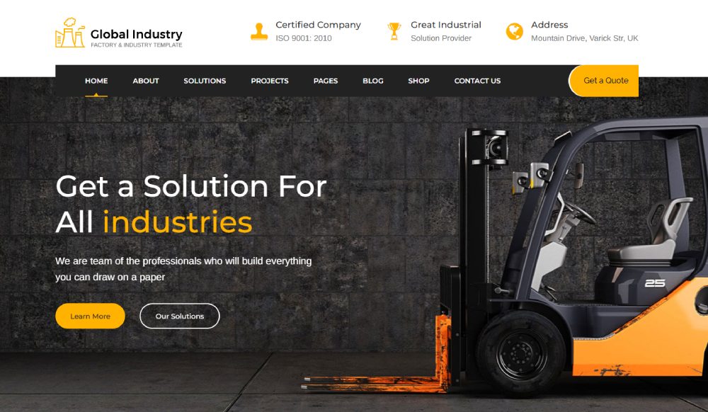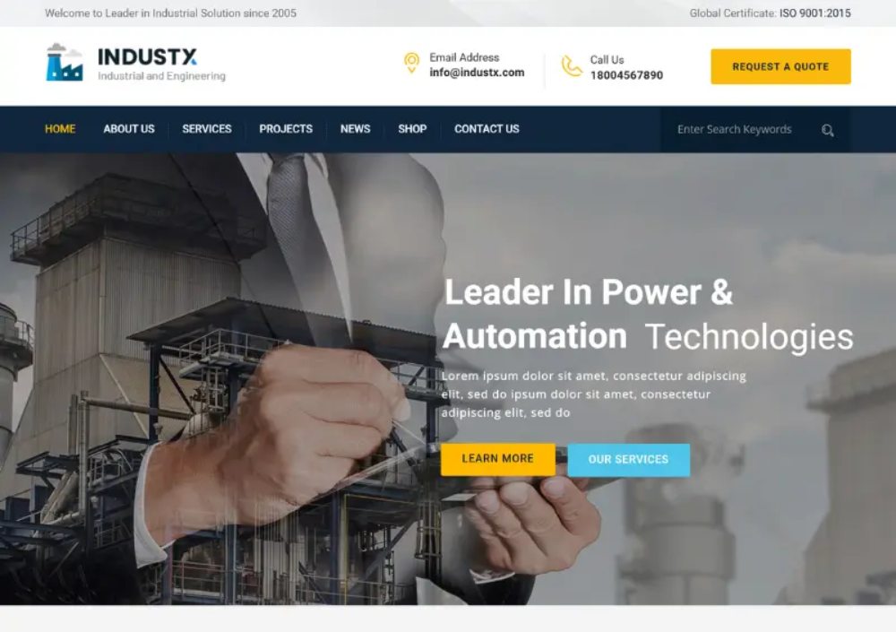 Industrial website template is a pre-designed web page layout built for manufacturing companies, construction firms, engineering businesses, and factory operations.