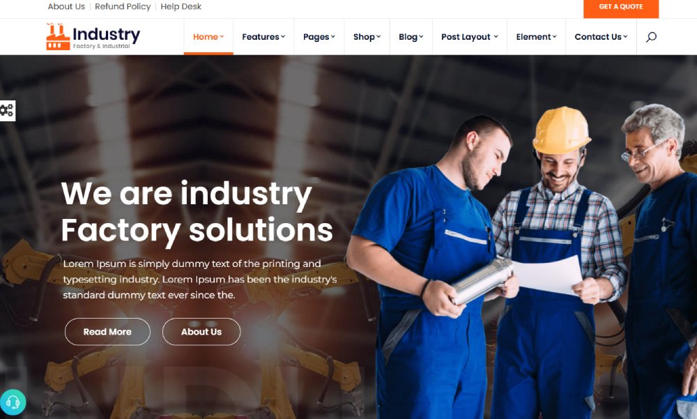 WordPress themes for industrial sites include demo content, premium plugins, and one-click installation. ThemeForest lists over 3,700 industrial options ranging from $29 to $69.