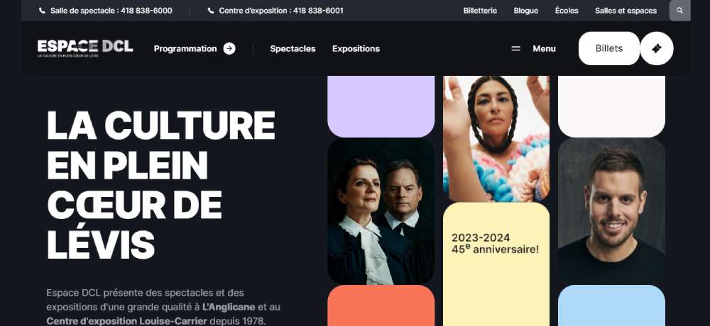 Since 1978, Espace DCL has been showcasing high-quality shows and exhibitions, and their website reflects this legacy.