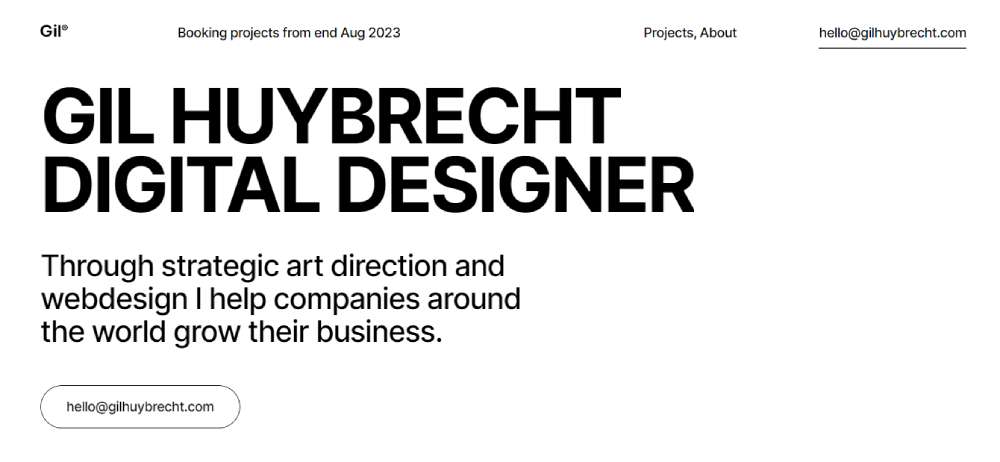 Freelance designer Gil Huybrecht's portfolio is a strategic blend of art direction and web design, helping businesses grow through color.