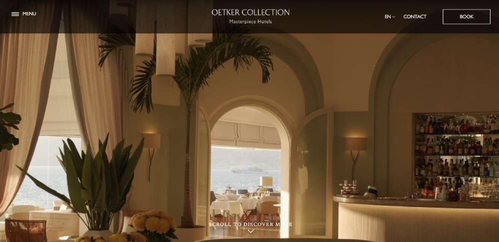 Luxury hotels, masterpiece hotels. Oetker Collection's website is a carousel of astounding videos. A gentle color scheme of white and light sea green, pastels that represent rejuvenation, calmness, renewal. It's not just a stay; it's an experience.