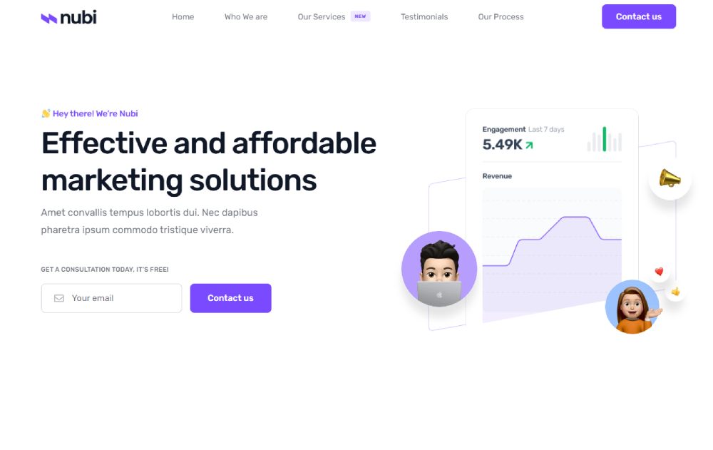 Good form design in a marketing template keeps fields to a minimum, uses clear labels, and places the form where visitor attention peaks. Typically right after a benefit section or a testimonial page block.