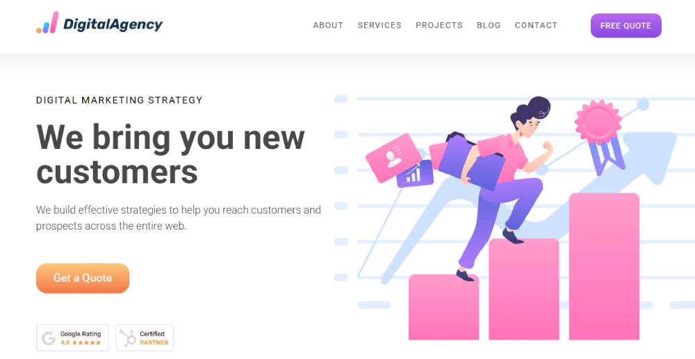 Agency websites focused on creative services lean toward templates with strong visual hierarchy and illustration-heavy layouts.