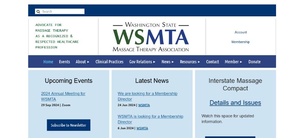 The Washington State Massage Therapy Association (WSMTA) advocates for massage therapy as a respected healthcare profession. They offer resources, events, and a supportive community for massage therapists. Membership provides access to industry news, clinical practices, and government relations updates.