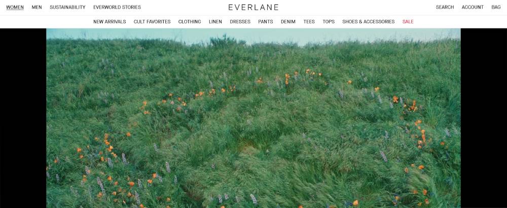 Product photography dominates with minimal interface elements. Typography maintains clothing label aesthetics. White space creates breathing room around fashion items. Navigation consolidates categories without overwhelming options. Mobile experience prioritizes quick product browsing.