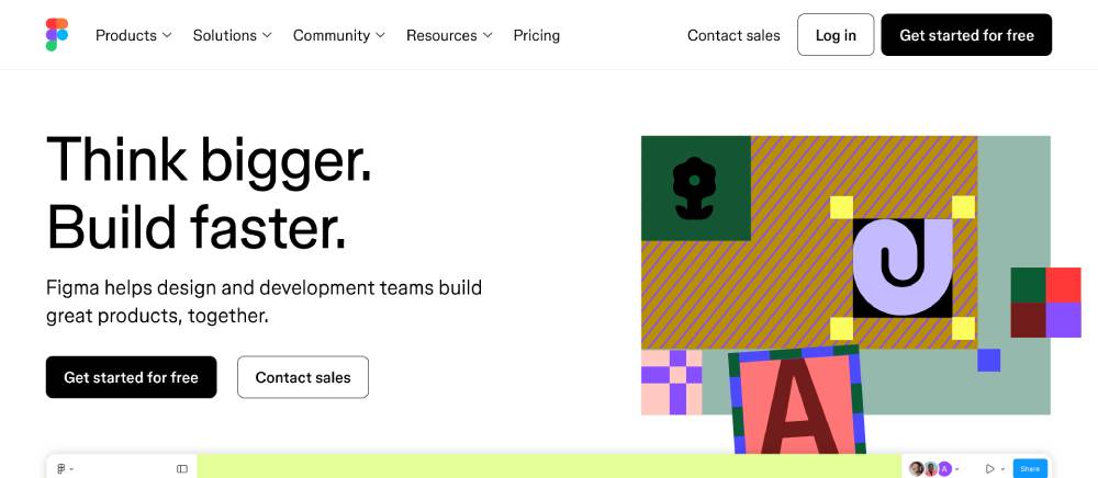 Interface echoes the product's own design tool aesthetics. Cursor demonstrations show collaborative features in action. Purple brand accents appear at key interaction points. Homepage features actual design components rather than stock images. Navigation simplifies complex features into clear categories.