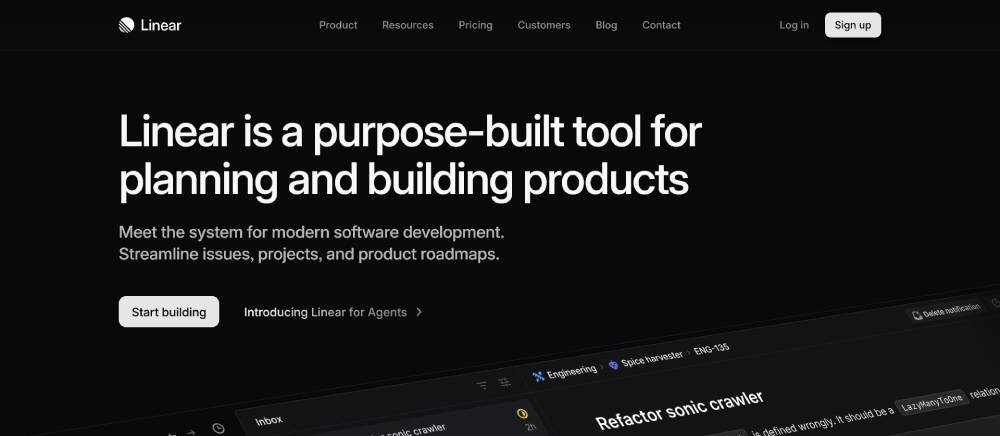 Dark mode default creates a developer-friendly aesthetic. Minimal animations highlight state changes effectively. Typography uses monospace elements for technical credibility. Interface demonstrates actual product interactions. Horizontal scrolling sections break the traditional vertical flow.