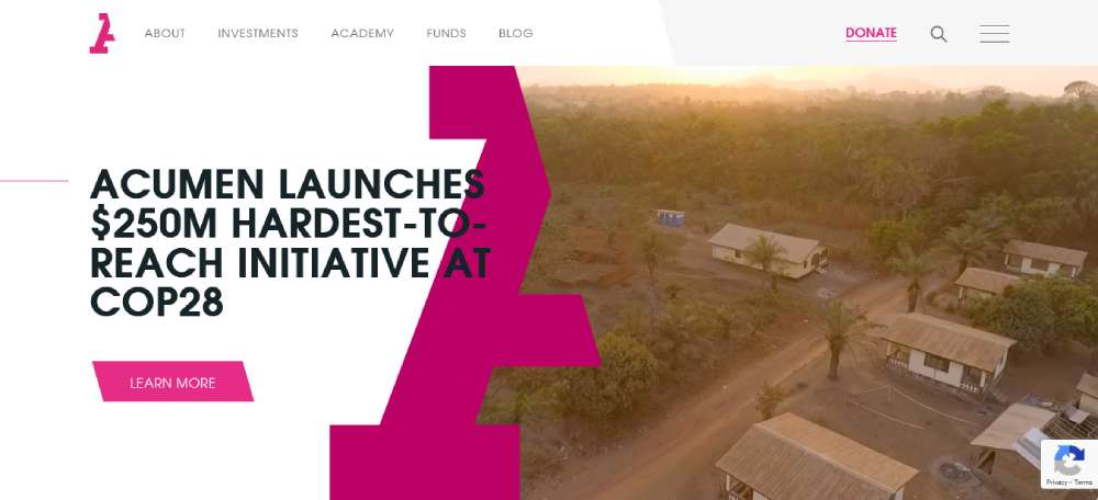 Over at Acumen, it's about standing out. That pink/magenta vibe? Totally catches your eye. And the layout? Spacious and inviting. They've nailed the Social Entrepreneurship angle with a touch of Modern Non-Profit Aesthetics. It's class meets cause, wrapped in a Bold Color Scheme.