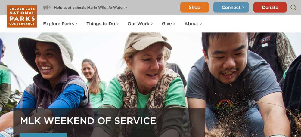 Here's a love letter to nature – Golden Gate National Parks Conservancy. Trails, parks, youth programs, ecosystem conservation, they've got it all. Their site's a journey through Natural Preservation and Community Outreach, wrapped in Scenic Web Imagery and Educational Outreach.