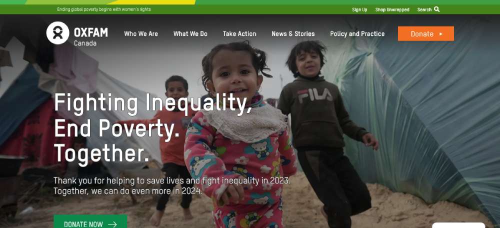 Oxfam Canada – these guys are on a mission for equality, gender justice, and positive change. Their website? It's like an action center, rallying people around elections, global crises, gender justice. It’s Social Justice Advocacy Web Design done right, sparking change with every visit.