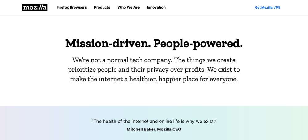 Let's talk Mozilla. This crew's the force behind Firefox, and they're all about the web for everyone. It's not just a browser; it's a statement. They're mixing Digital Literacy with Open-Source Software in the non-profit sphere. It's all about empowering folks online, blending User-Friendly Design with Online Privacy.