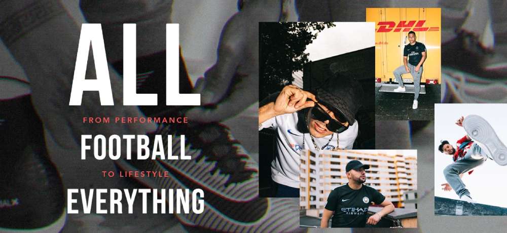 All Football Everything – From the streets of Barcelona to the buzz of Berlin. It's not just a landing page; it's a showcase of Nike’s freshest football kits. It's like walking into the Champions League of web design.
