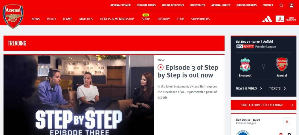 Arsenal – Talk about style! Their site's design is sleek on any device. The use of white space? Chef’s kiss! It makes everything pop. And the navigation bar is like a magic portal to everything Arsenal.