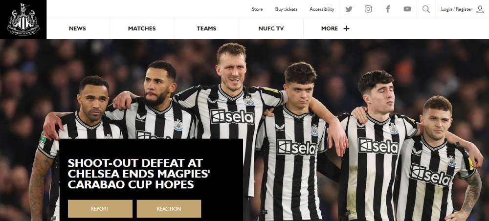 Newcastle United – This site's got it all: engaging content, interactive elements, and a killer hero section. And those social media buttons? Perfectly placed for fans to jump right into the social buzz.