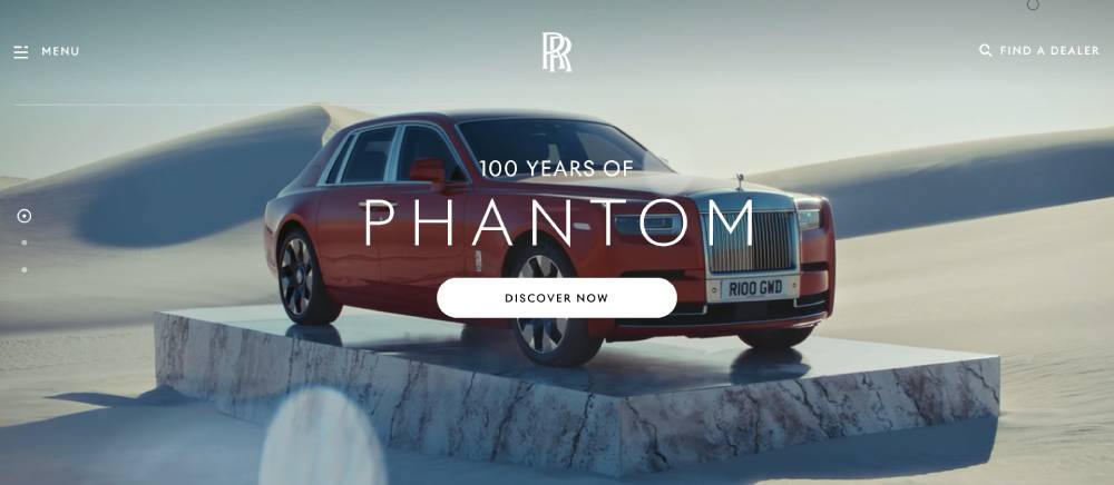 Full-screen imagery creates immersive luxury experience. Navigation remains discreet until needed. Typography uses elegant serif fonts with generous spacing. Color palette stays restrained with dark backgrounds highlighting vehicle details. Loading animations bridge between content sections smoothly.