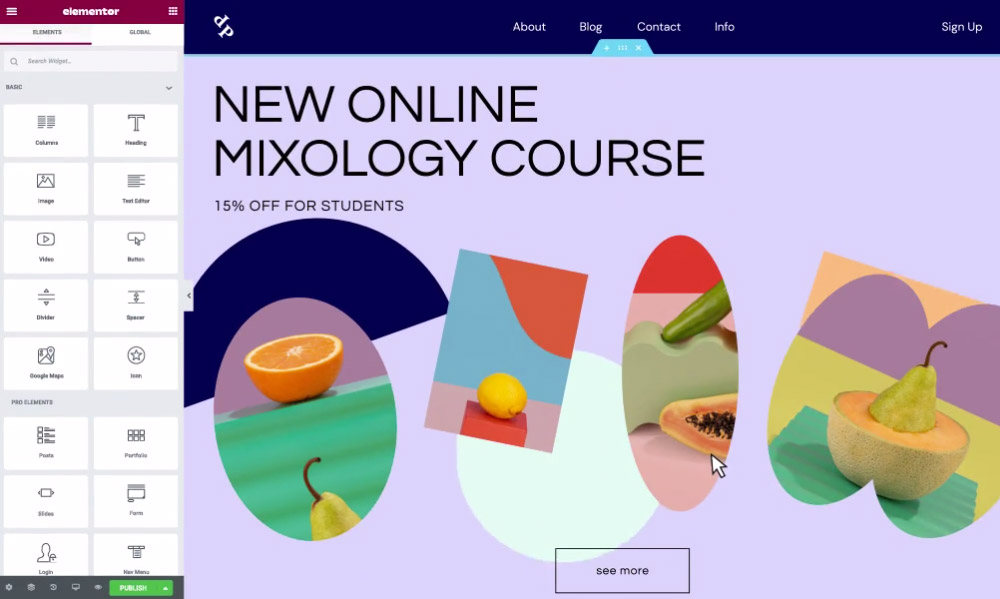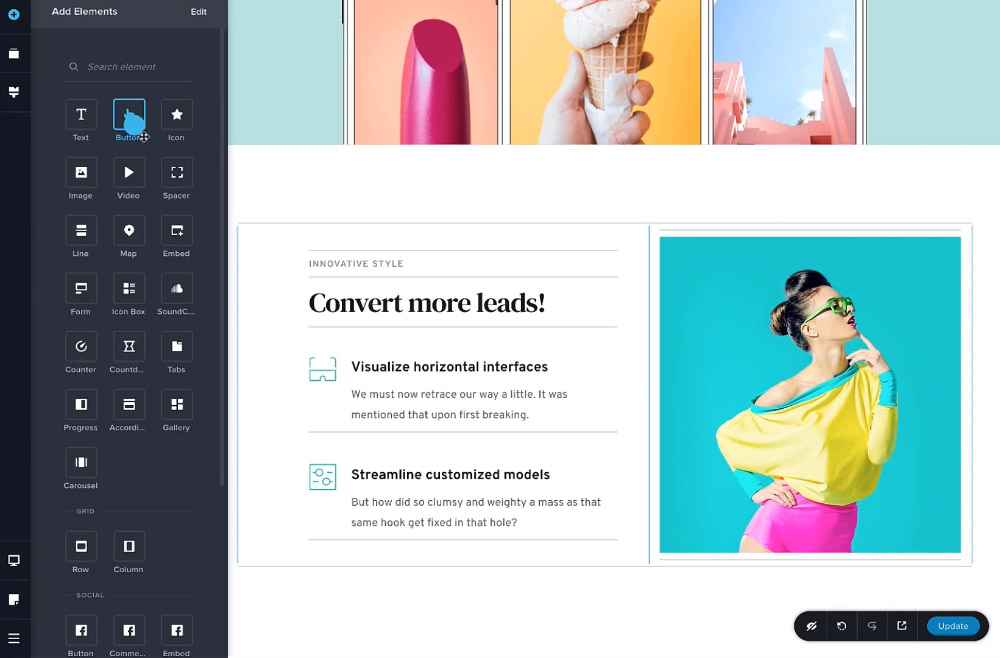 Although there’s no inline text editing, the changes you make through the sidebar are instantly applied to your page. Elementor’s pro version features