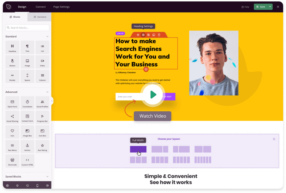 The plugin lets you create sales pages, coming soon pages, maintenance mode pages, opt-in pages, webinars, and much more. It also offers a live preview to view all the changes in real-time.