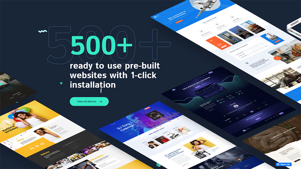 The BeTheme package, included with the purchase of Live Builder, contains a massive library of 600+ prebuilt websites.
