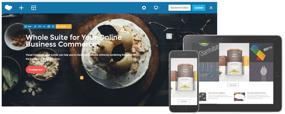With Visual Composer Website Builder, WooCommerce content is added as an element.Content examples include a price feature, "add to cart", a gallery, or a column.